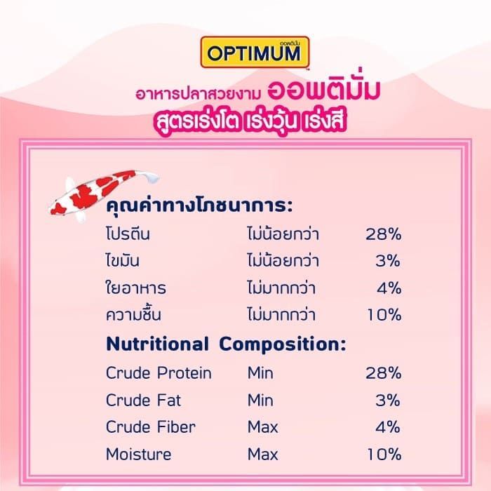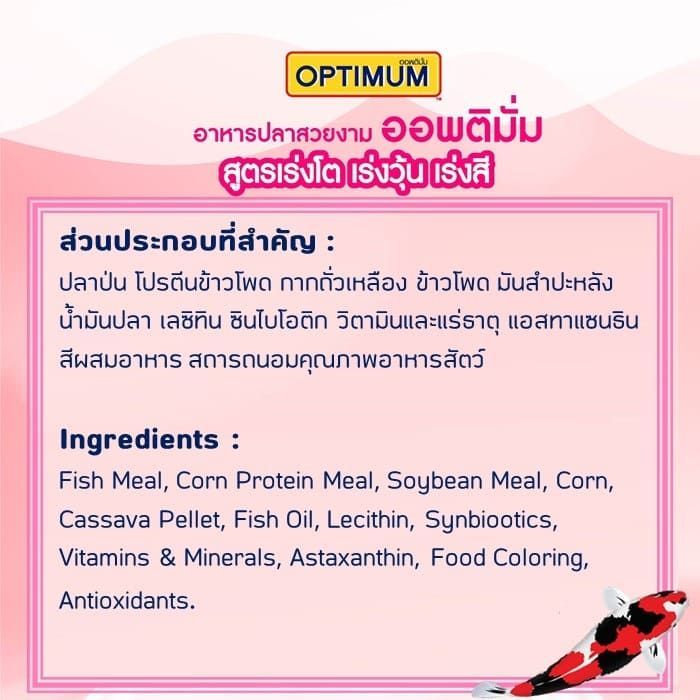 อาหารปลา Optimum ออพติมั่ม อาหารปลาสวยงาม ขนาด 20g.- 1 Kg (ถุงสีชมพู)