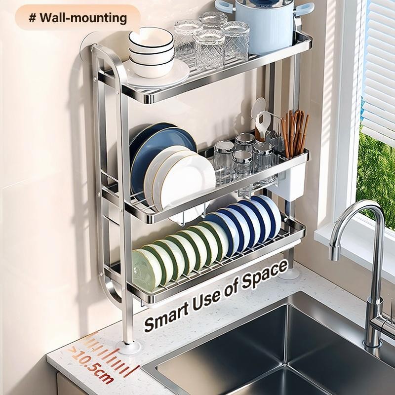 NBSail【สแตนเลส 304】ชั้นวางจานติดผนังพร้อมถาดรองน้ำทิ้งแบบถอดได้