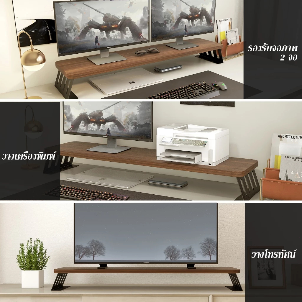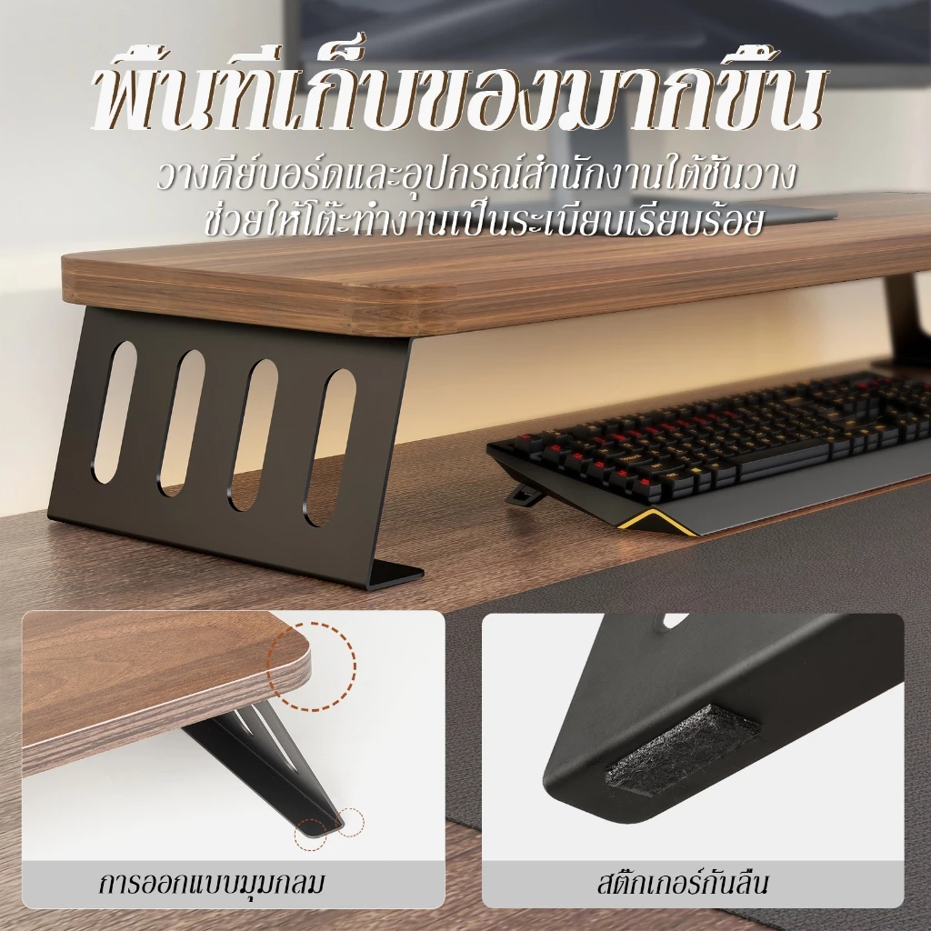 ที่วางจอคอม ชั้นวางจอคอม แผ่นพื้นผิวเสริมความหนา เหล็กผสมไม้ รับน้ำหนักมั่นคง ทนทานและทนต่อแรงกด