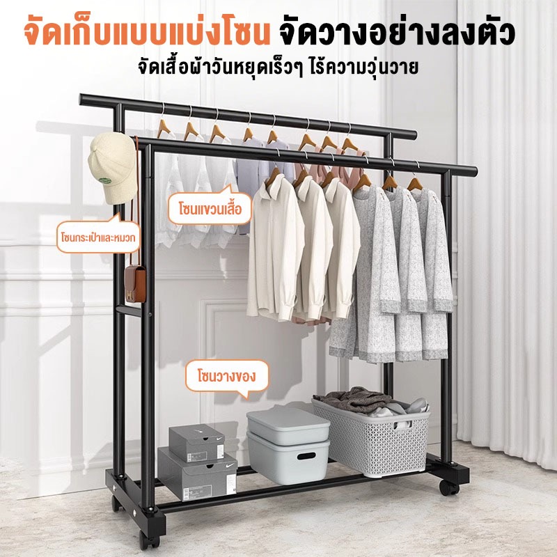 ราวตากผ้าในบ้าน แบบตั้งพื้น แบบคู่เสาหนา แข็งแรง ทนทาน พร้อมเชือกตากผ้า