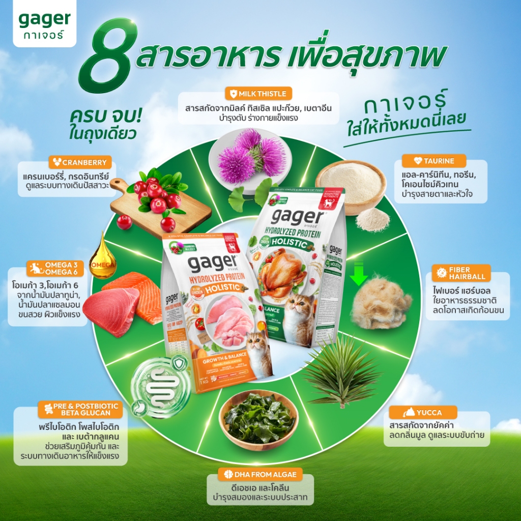 Gager อาหารแมว กาเจอร์ โฮลิสติก เสริมวิตามิน เพื่อสุขภาพ พัฒนาโดยสัตวแพทย์ สูตรไก่ (ขนาด 1 กิโลกรัม)