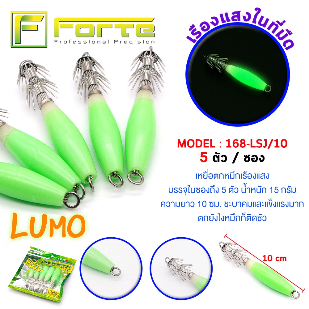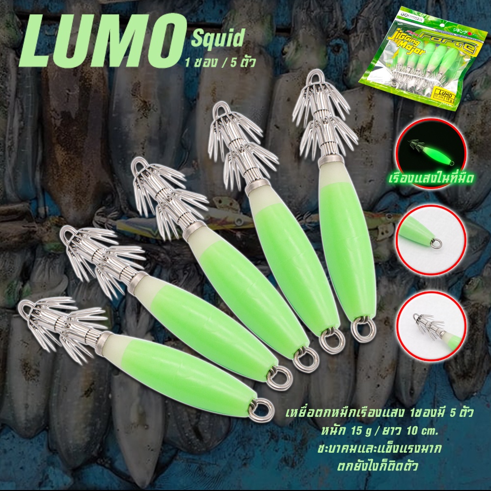 โยตกหมึกเรืองแสง LSJ ตัวโยทำจากยางเหนียวนุ่ม เรืองแสงดี ชบาคมแข็งแรงทำจากสแตนเลสอย่างดีไม่ขึ้นสนิม