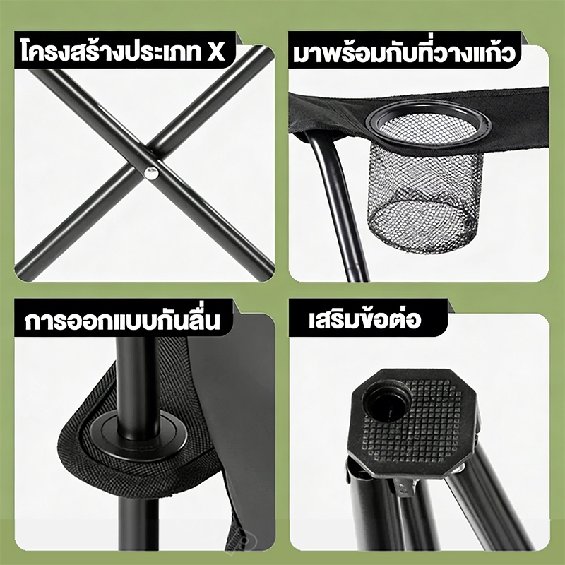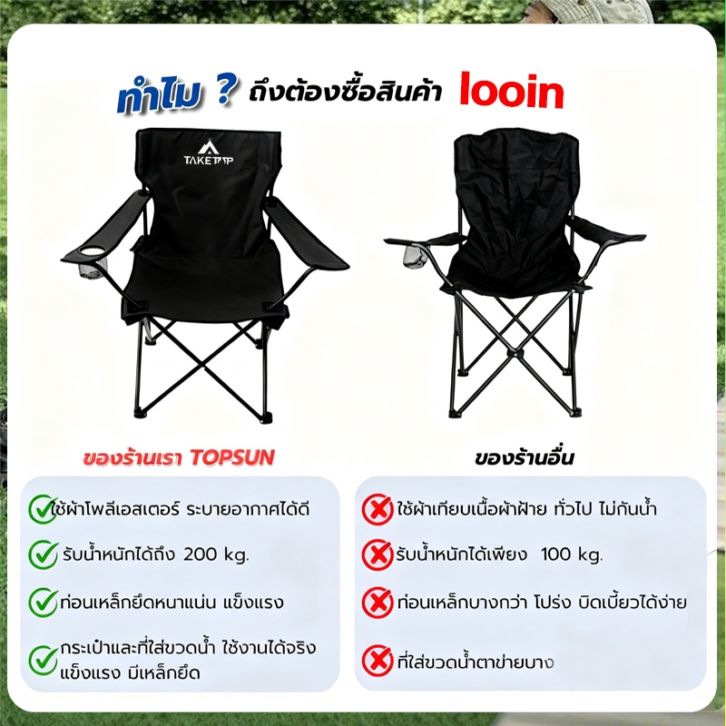 เก้าอี้แคมป์ปิ้ง เก้าอี้สนาม (มีที่พักแขน) เก้าอี้ปิคนิค เก้าอี้ เก้าอี้พับได้ พับได้ มีถุงใส่หูหิ้ว