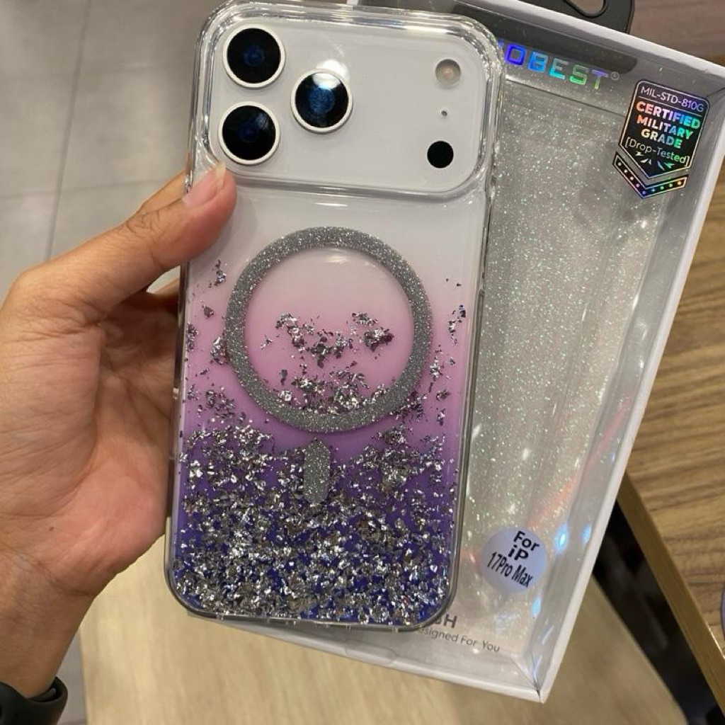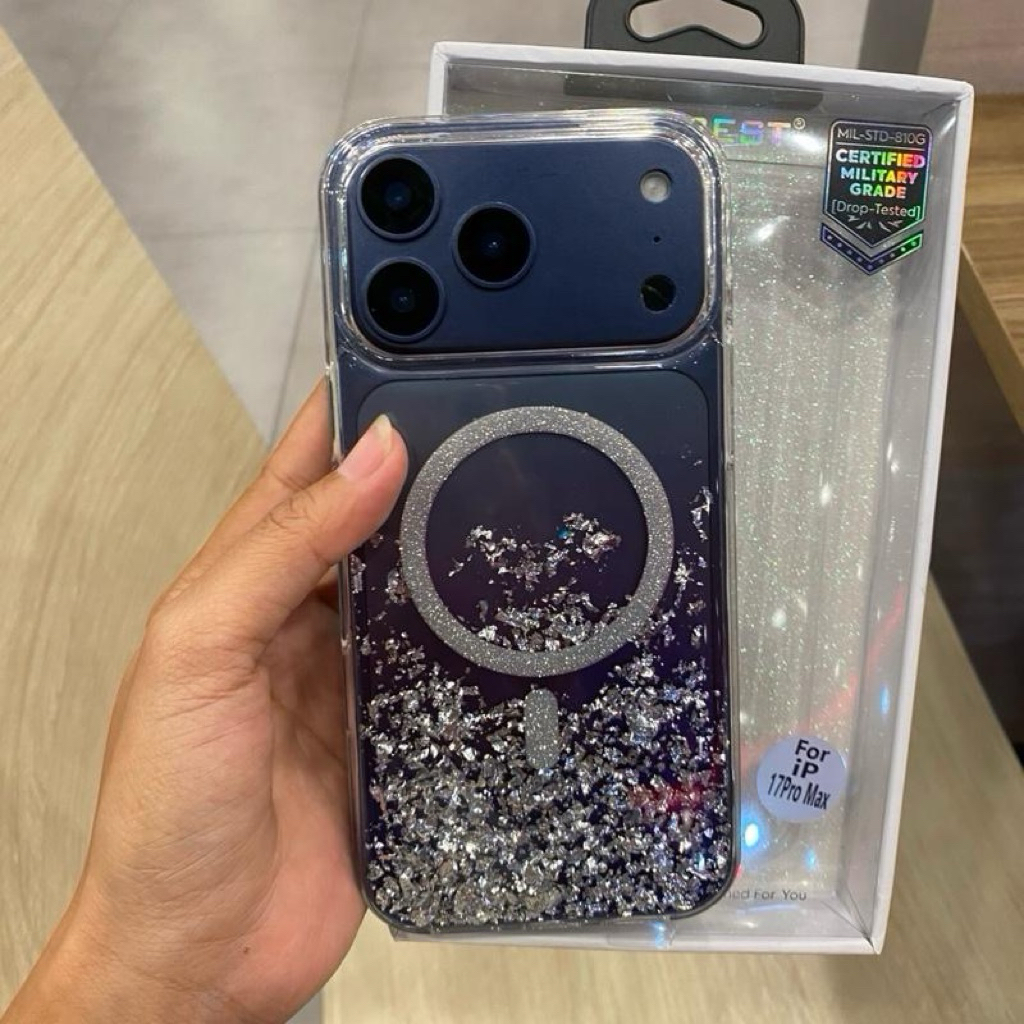 เคสกลิตเตอร์เรซิ่น มีที่ชาร์จไร้สาย งานขอบนิ่มหลังแข็ง