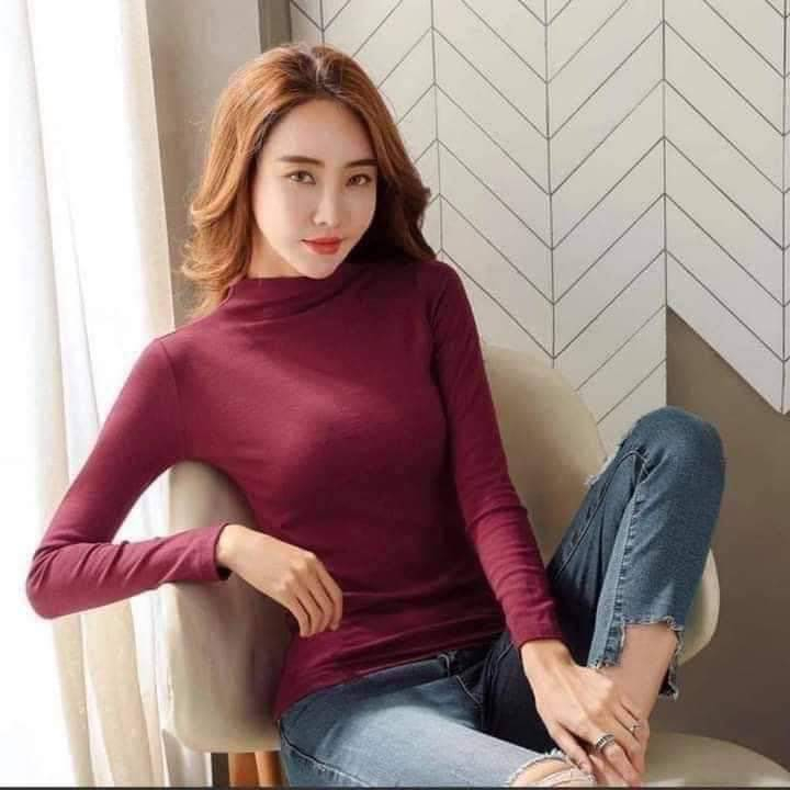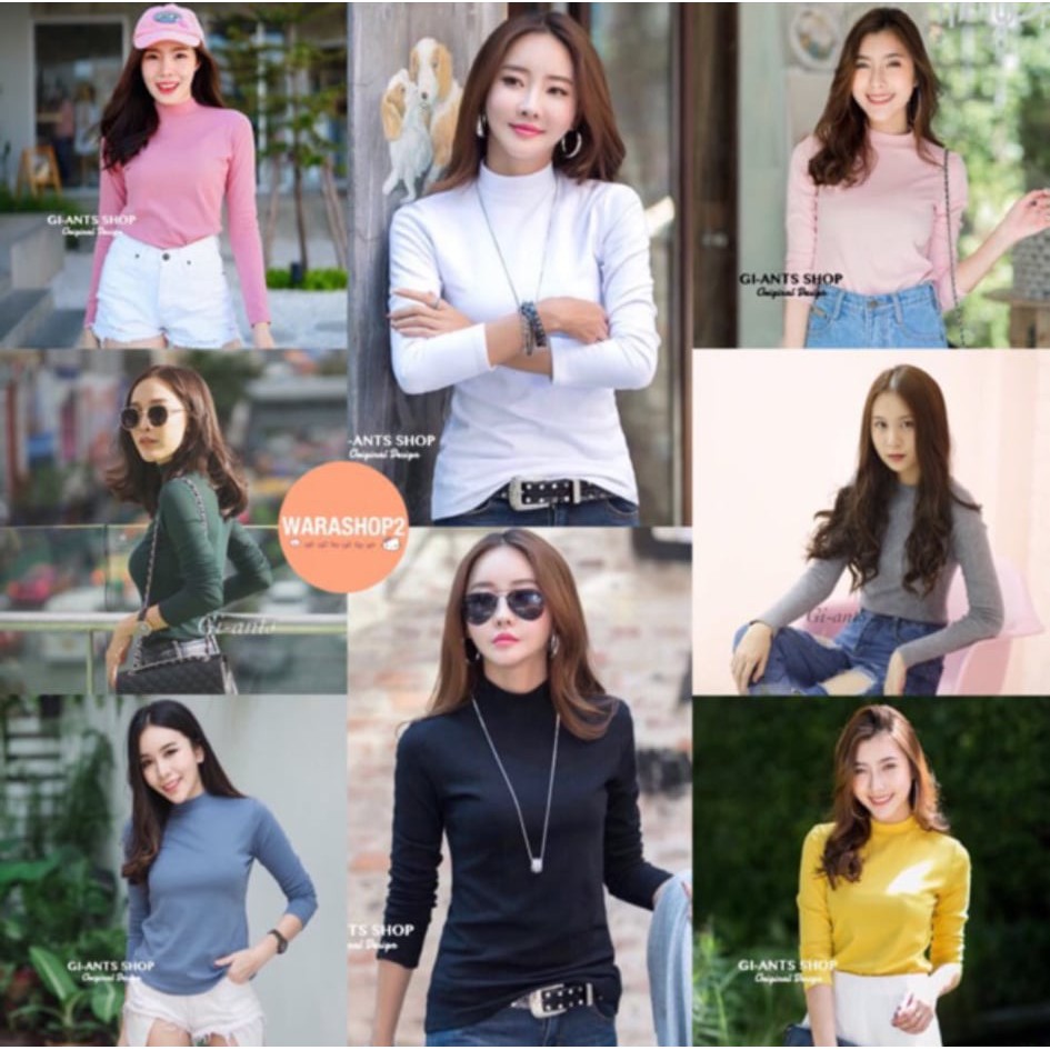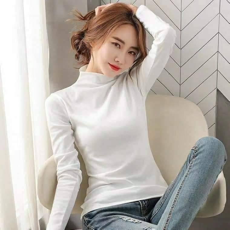 เสื้อคอเต่าแขนยาว เต็มตัว (ผ้าคอตตอน) เสื้อคอเต่า แขนยาว สีพื้น เต็มตัว ทรงสวยสไตล์เกาหลี