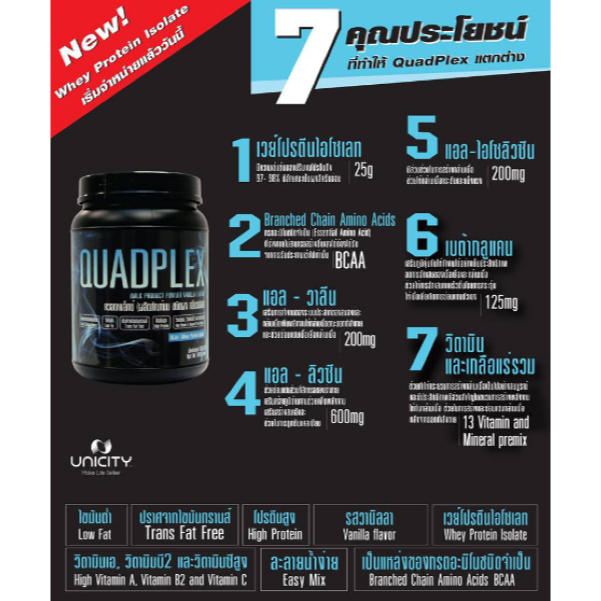 Quadplex Unicity ควอดเพล็กซ์ เวย์โปรตีน ลีนไขมันช่วยเพิ่มกล้ามเนื้อ สินค้าแท้💯%