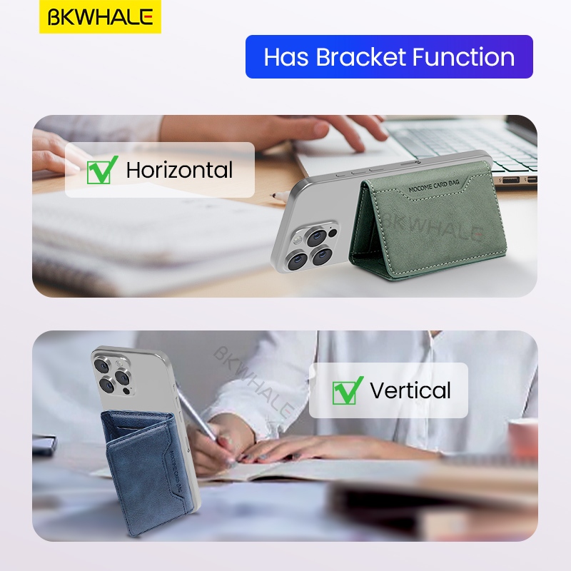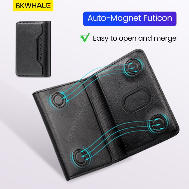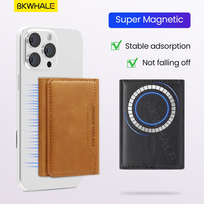 BKWHALE Magnetic Wallet Card Holder/หนังคลิปการ์ดสําหรับiPhone 17 16 15 12 13 14 Pro Max Samsung S25 S24 S23 Ultra