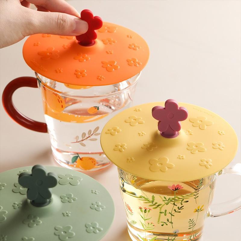 ฝาถ้วยซิลิโคนเกรดอาหารขนาดใหญ่เส้นผ่าศูนย์กลางฝาถ้วยสากลฝาแก้วน่ารักฝุ่นรอบดอกไม้