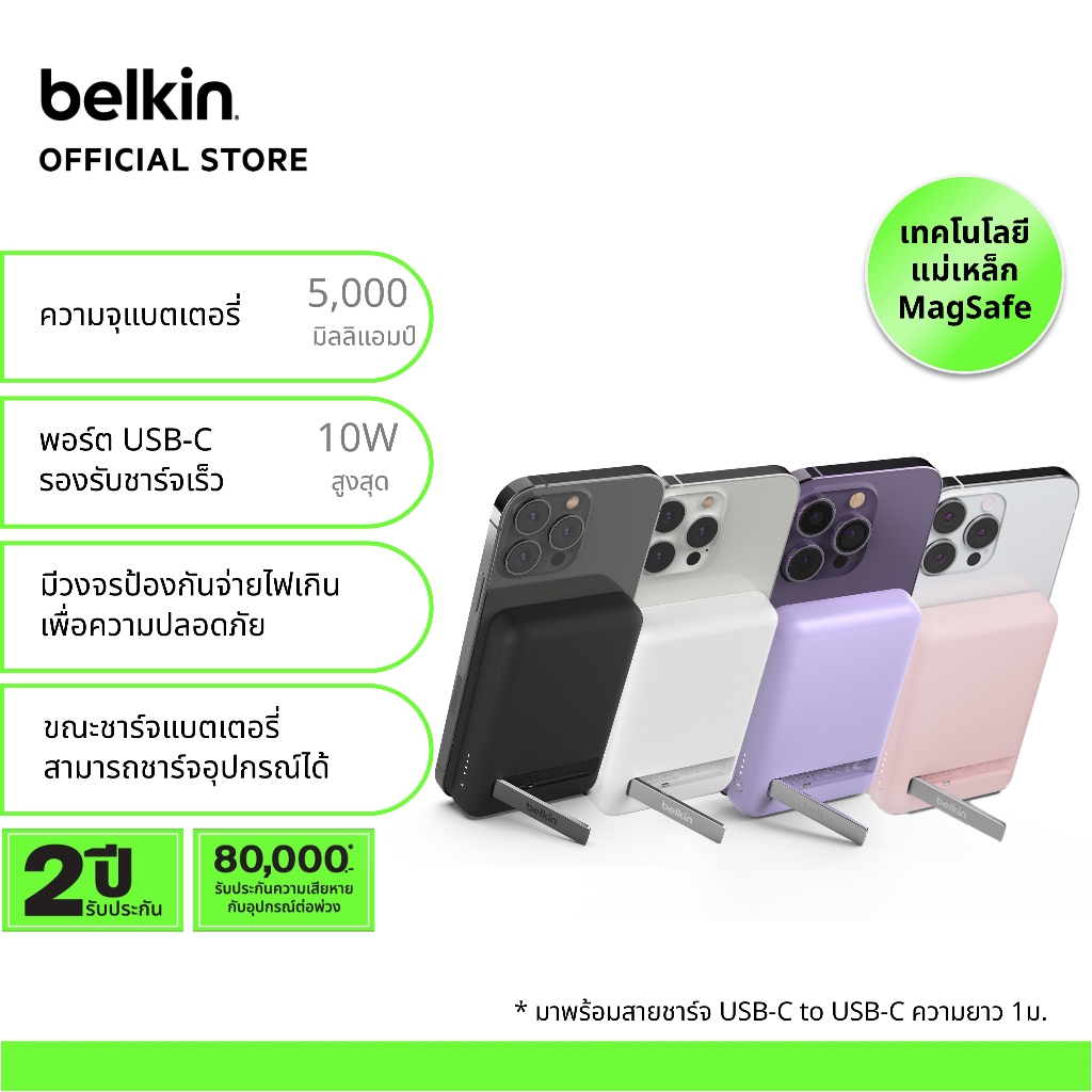 Belkin BPD004 Power Bank แบตสำรอง พาวเวอร์แบงค์ชาร์จไร้สายแม่เหล็ก MagSafe ขนาด 5,000mAh ประกัน 2 ปี