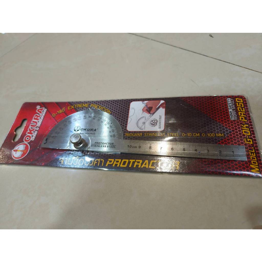 OKURA จานวัดองศา ฉากสแตนเสล ไม้บรรทัดวัดองศา โปรแทรกเตอร์ ยี่ห้อ OKURA รุ่น PR-250 ของแท้
