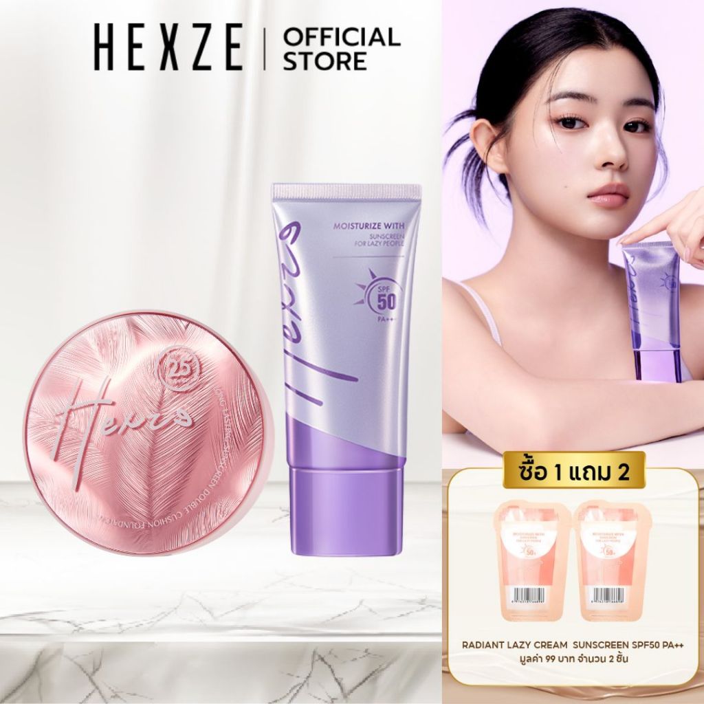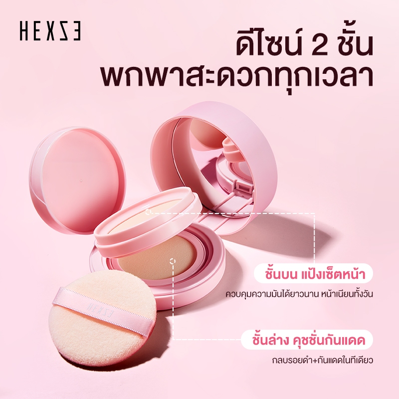 HEXZE DOUBLE CUSHION + UP SUNSCREEN SPF50 คุชชั่น พร้อมแป้งพัฟในตัว ครีมสำรับคนขี้เกียจ ครีมกันแดด