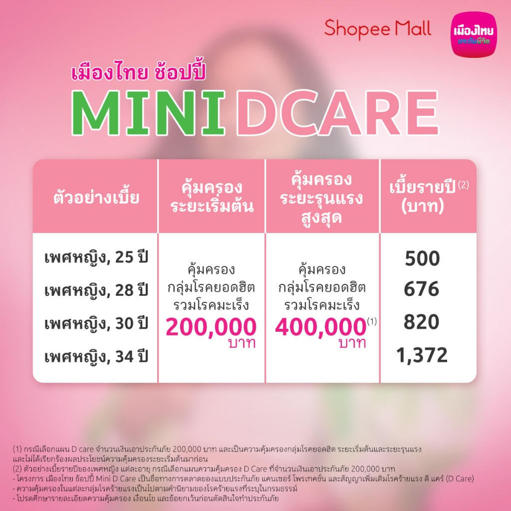 [E-voucher] ประกันโรคมะเร็งและโรคยอดฮิต : เมืองไทย ช้อปปี้ Mini D Care - แผน 200,000 สำหรับอายุ 25-34 ปี