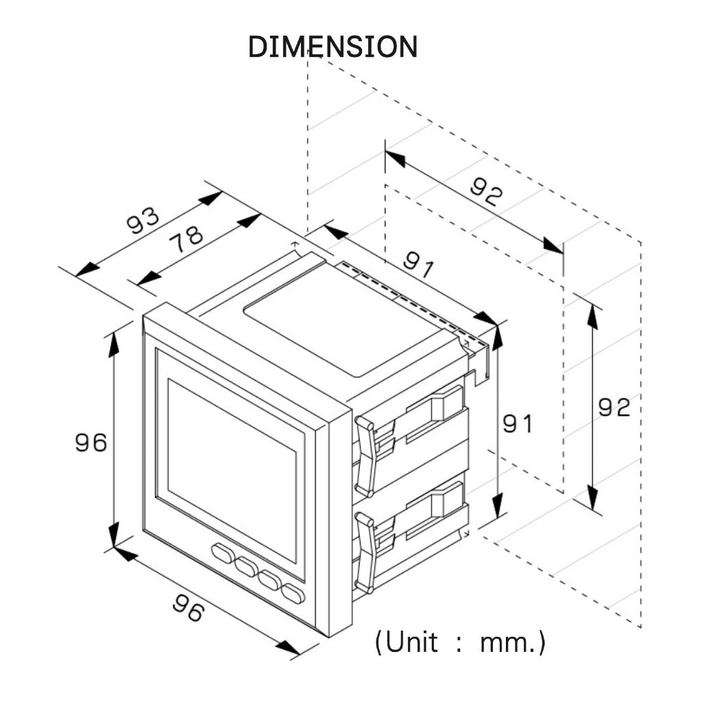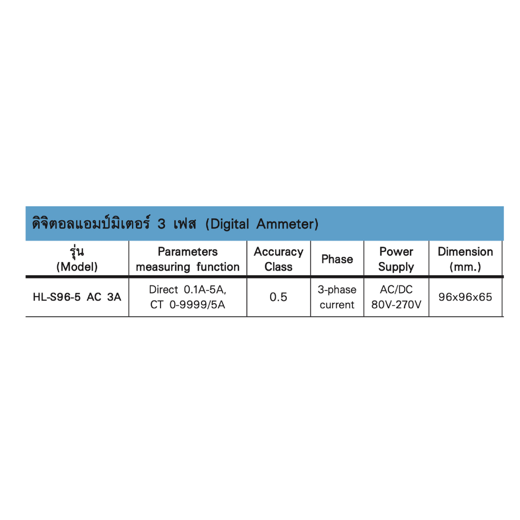 Qubix ดิจิตอลแอมป์มิเตอร์ HL-S96-5 AC 3A 0.1A-5A LED 80-270Vac/dc 3 Phase Digital Panel Meter HL