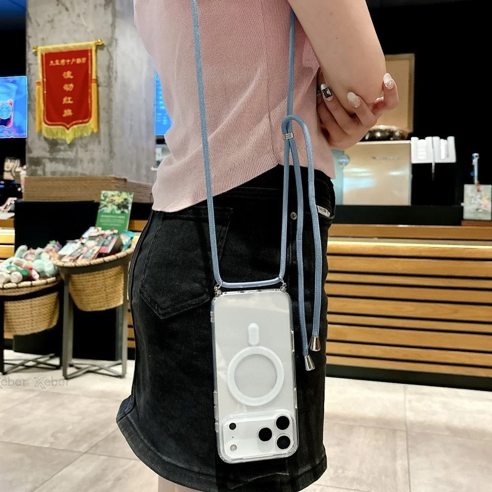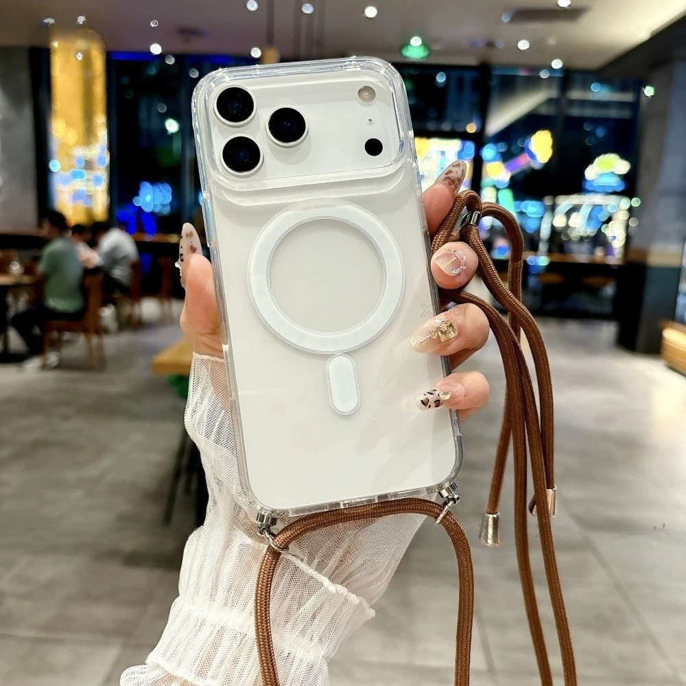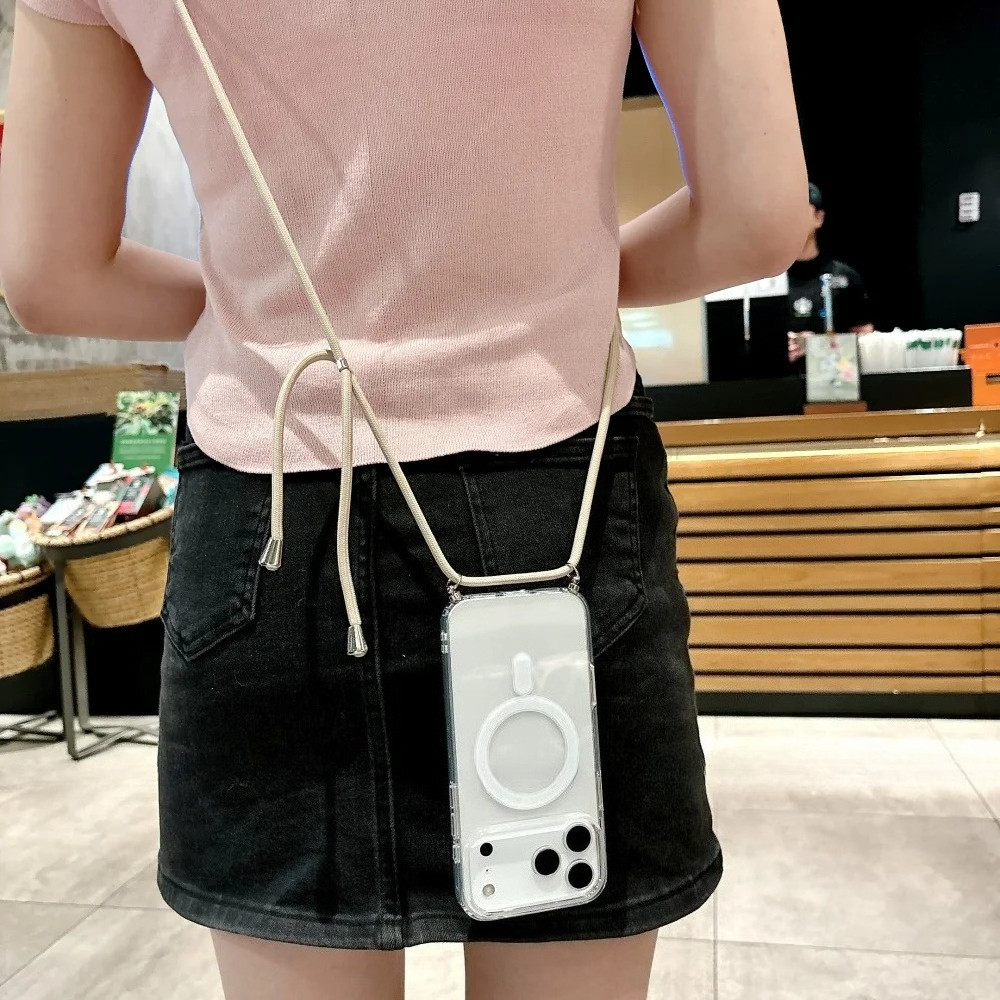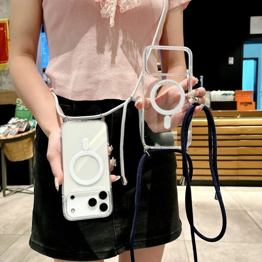 เชือกเส้นเล็กCrossbodyสร้อยคอเชือกเคสใสสําหรับiPhone 17 16 Pro Max 17 Air 16 Plusฝาครอบชาร์จไร้สายแม่เหล็ก