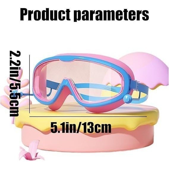 แว่นตาว่ายน้ำเด็ก (กรอบใหญ่ เลนส์ใส) - กันน้ำ/กันฝ้า ป้องกันดวงตา ความละเอียดสูง
