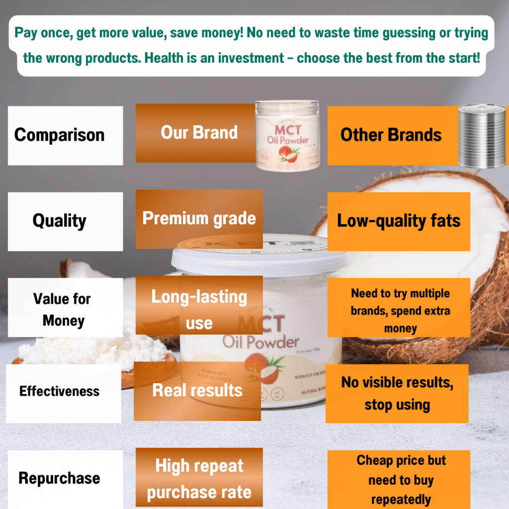 MCT Oil Powder C8 | 100% Pure Keto MCT | Fast Energy & Fat Burning | Sugar-Free | 100g