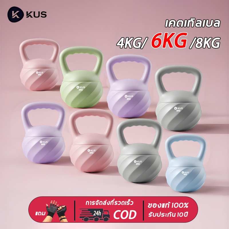 【🎁แถมถุงมือฟรี】KUS เคตเทิลเบล 6kg วัสดุพีวีซี แคทเทิลเบล จับถนัดมือ ฟิตเนส เสริมสะโพก kettlebell