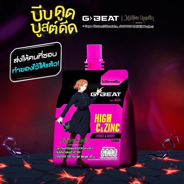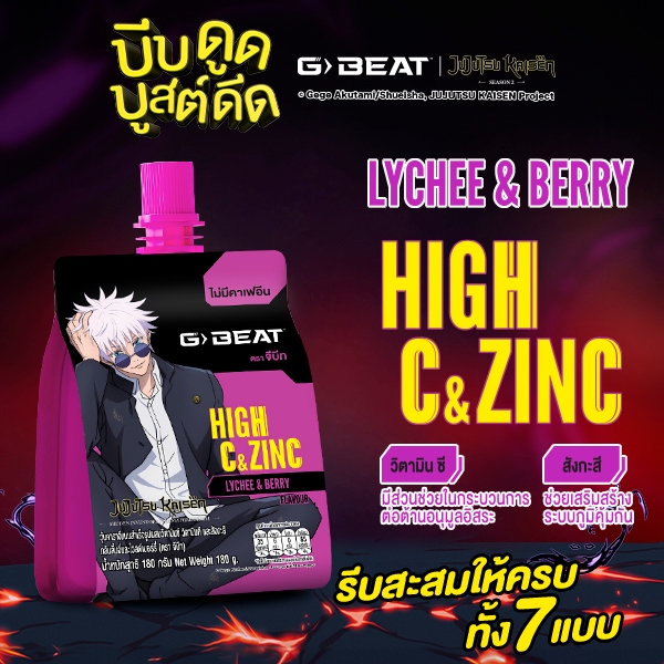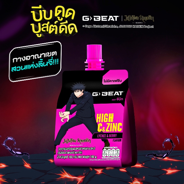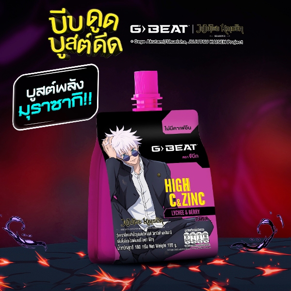G-BEAT x Jujutsu Kaisen LYCHEE BERRY JELLY 180g. PACK12 แถมฟรี !! กระเป๋าผ้าลาย GOJO