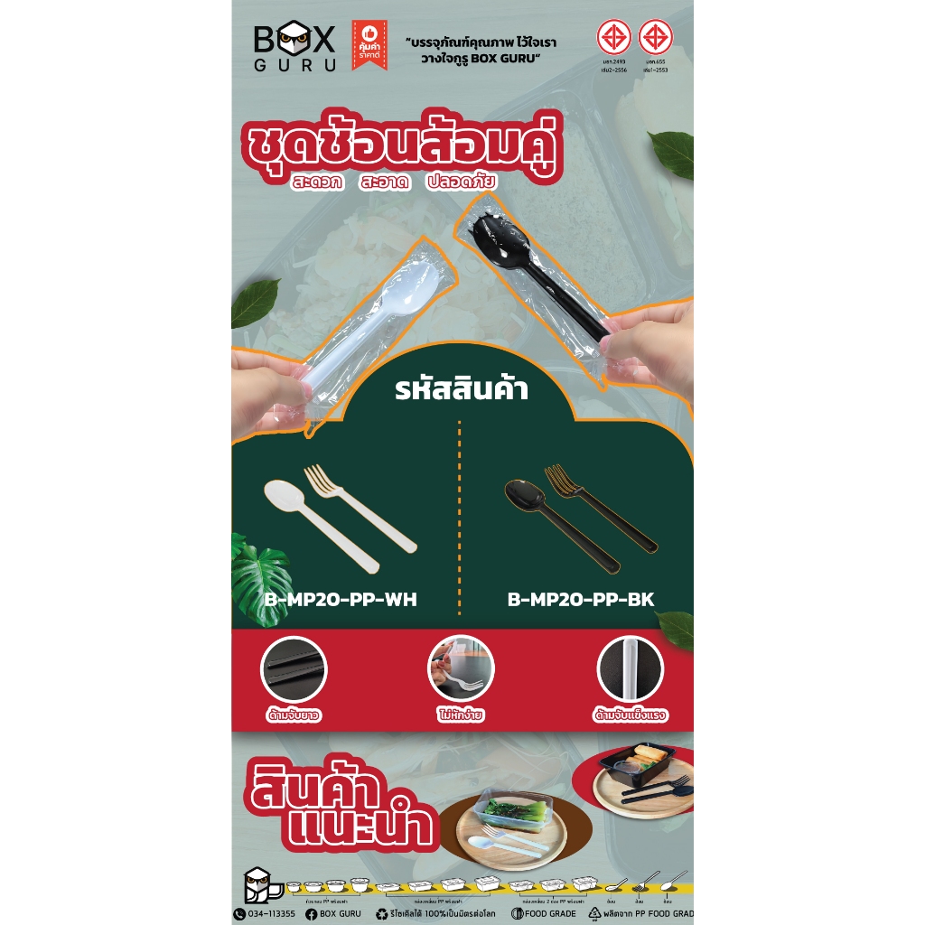 BOXGURU/ชุดช้อนส้อมคู่/50คู่/ขาว,ดำ