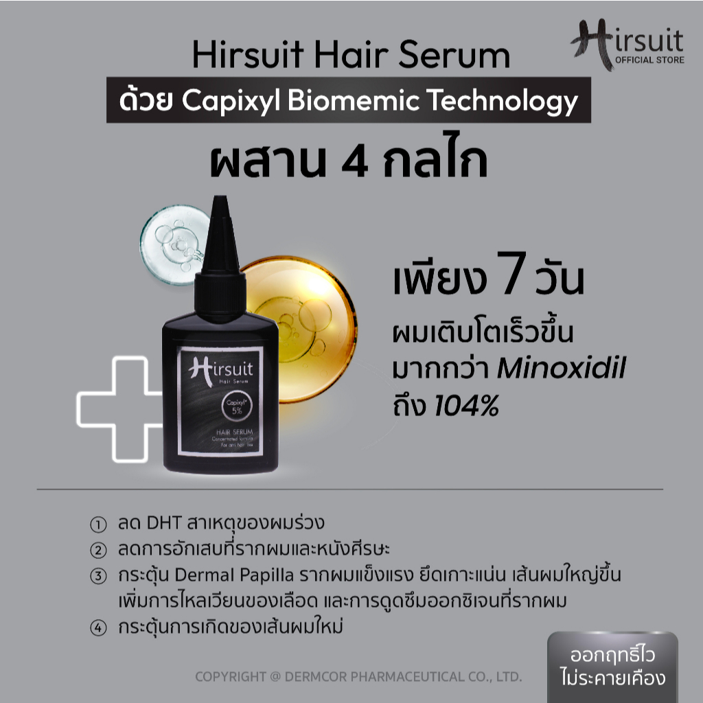 Hirsuit Hair Serum 45ml/5ml เซรั่มลดผมร่วง มีcapixyl5% แก้ผมร่วงdht กระตุ้นการงอก