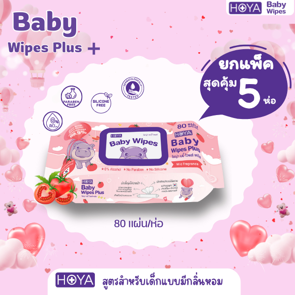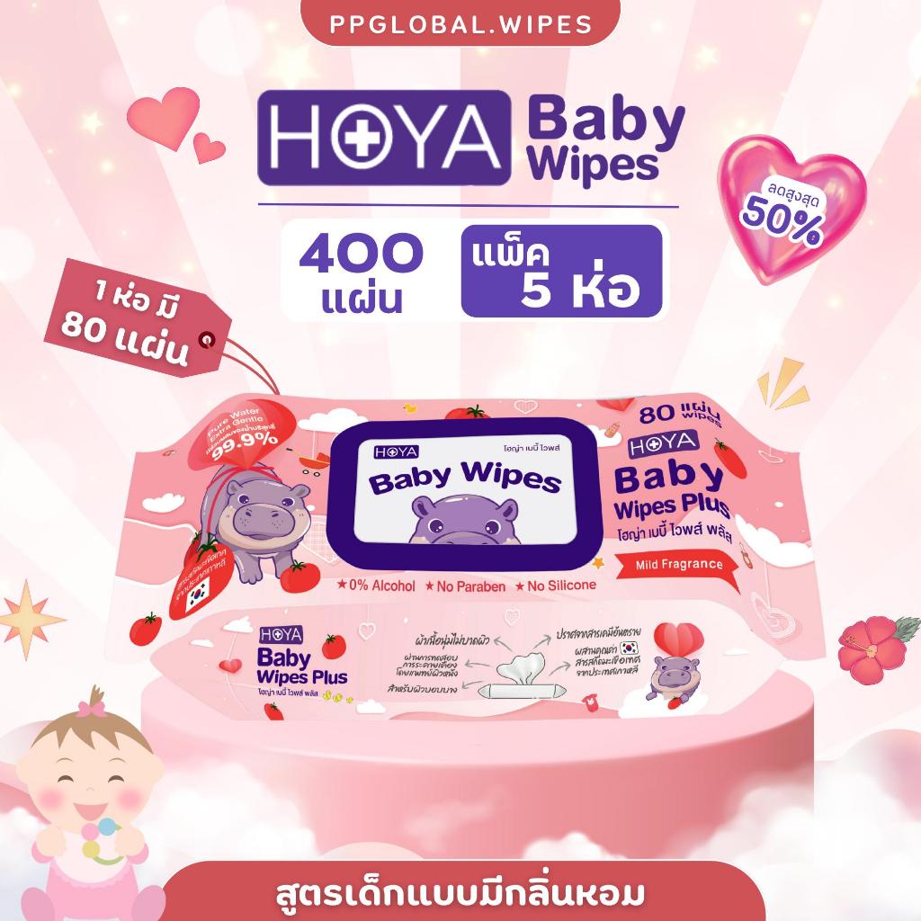 (แพ็ค5ห่อ มีน้ำหอม)HOYA ทิชชู่เปียก baby Wipes Plus 80แผ่น/ห่อ สูตรมีกลิ่นหอม อ่อนโยนสำหรับผิวบอบบาง