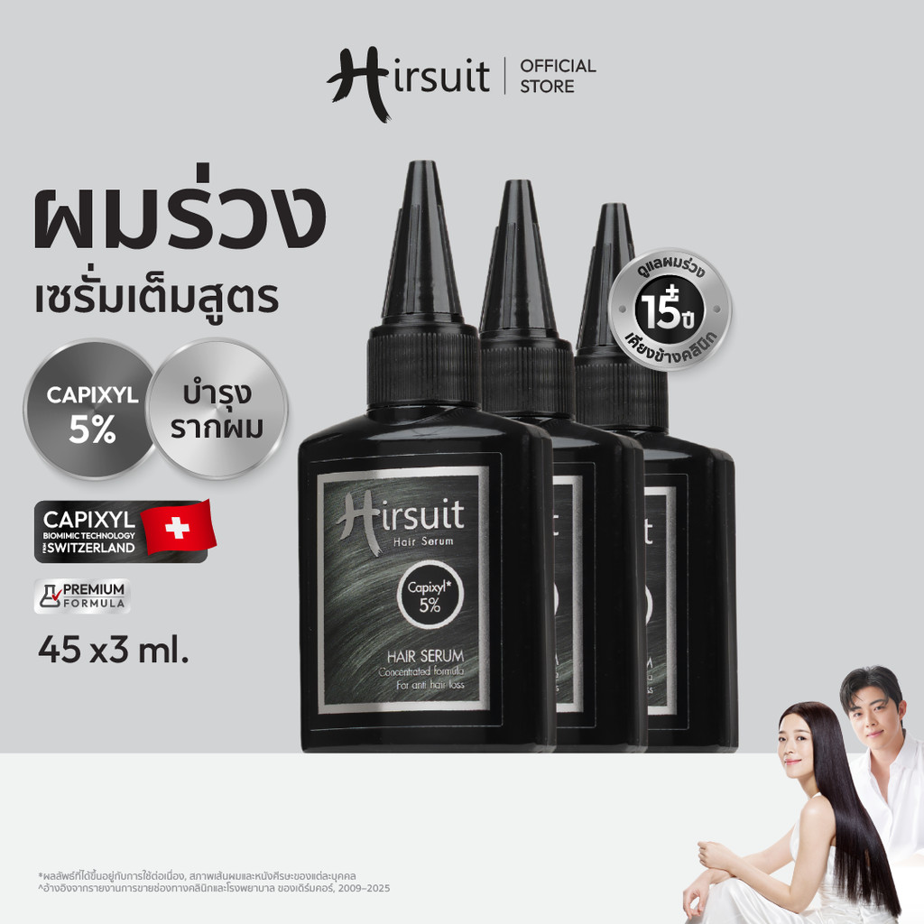 [แพ็กสุดคุ้ม] Hirsuit เซรั่มผมร่วง รุ่นHair Serum 45ml.3ขวด เซรั่มลดผมร่วง กู้ผมหนา ผมร่วง ผมบาง ผมร่วงเป็นหย่อม
