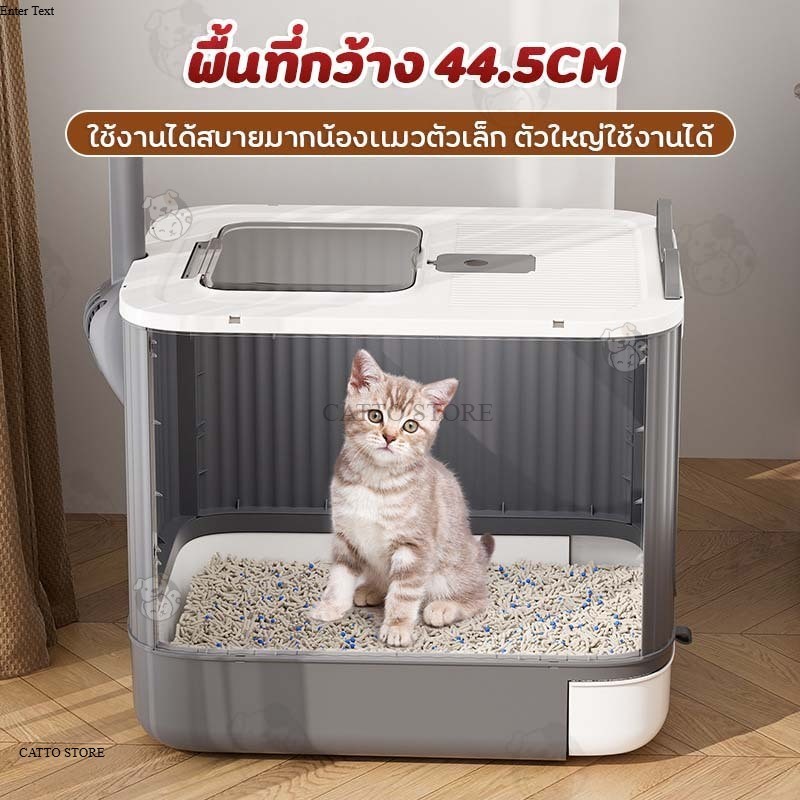 กระบะทรายแมว ห้องน้ำแมวขนาดใหญ่ ห้องน้ำแมวอัตโนมัติพร้อมลิ้นชัก ห้องน้ำแมวแบบปิดพร้อมฝาปิด กันกลิ่น กันทรายกระเด็น CR