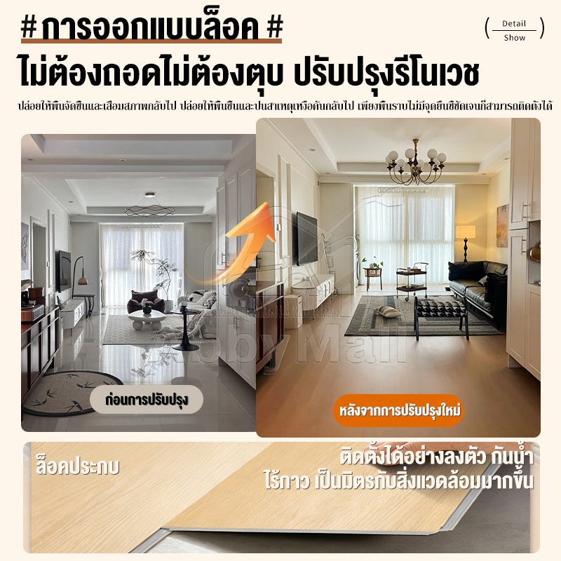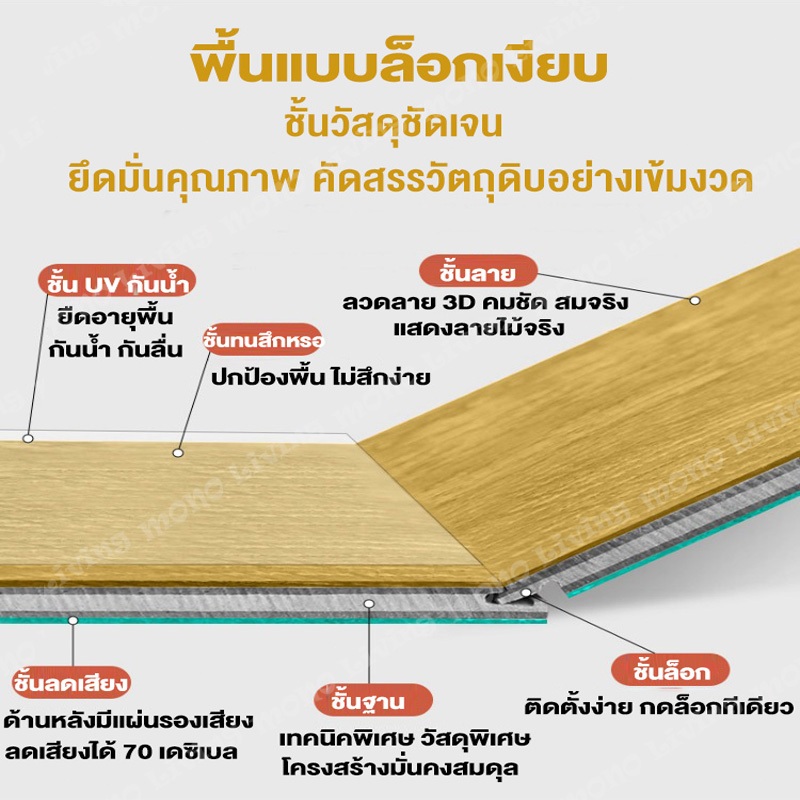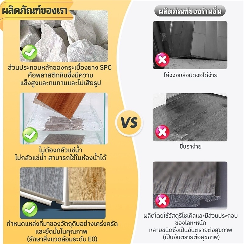 พื้น SPC คลิกล็อค กระเบื้องยาง หนา 5mm ทนไฟ กันความชื้น พื้นลายไม้ 【5 แผ่น/กล่อง】ปูได้ 1.1ตรม ติดตั้งง่าย