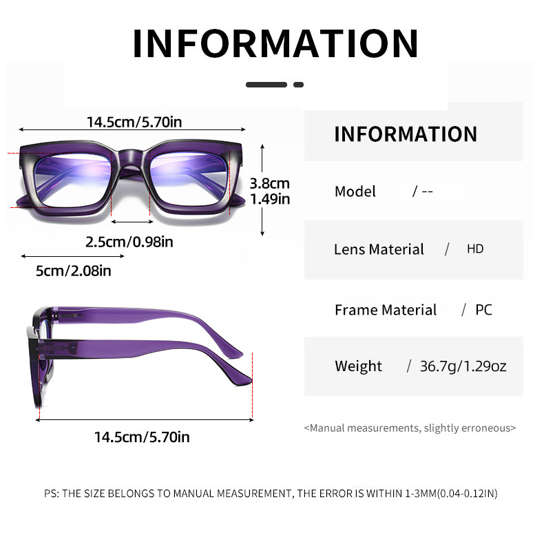 HS2226 1 ชิ้น Squared กรอบฤดูใบไม้ผลิบานพับสายตายาว Unisex Corrective แว่นตาอ่านหนังสือ