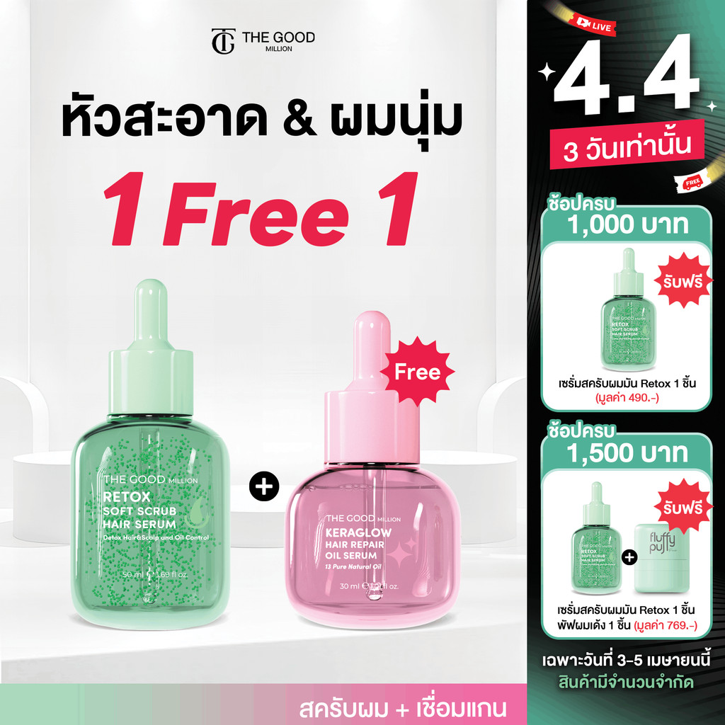 [1 แถม 1] Retox สครับหนังศีรษะ รีเซ็ตรากผม + Keraglow ฟื้นฟูผมแห้งเสีย บำรุงผมนุ่มสลวย