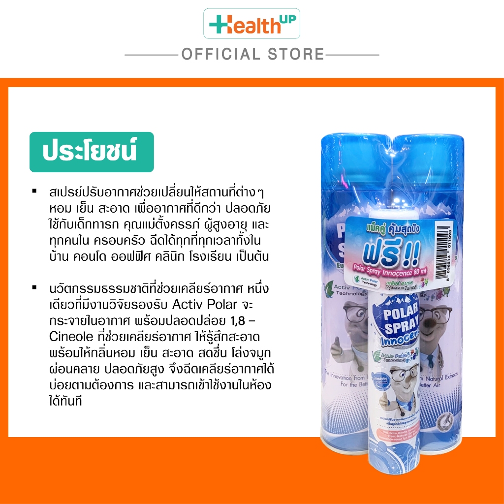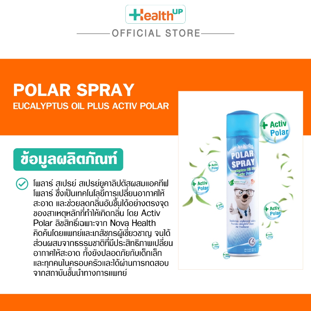 (สินค้ามีตัวเลือก) Polar Spray สเปรย์กำจัดกลิ่นและเชื้อโรคในอากาศ ผสมแอคทีฟ โพลาร์ กลิ่นยูคาลิปตัส กระป๋องละ 280ml.