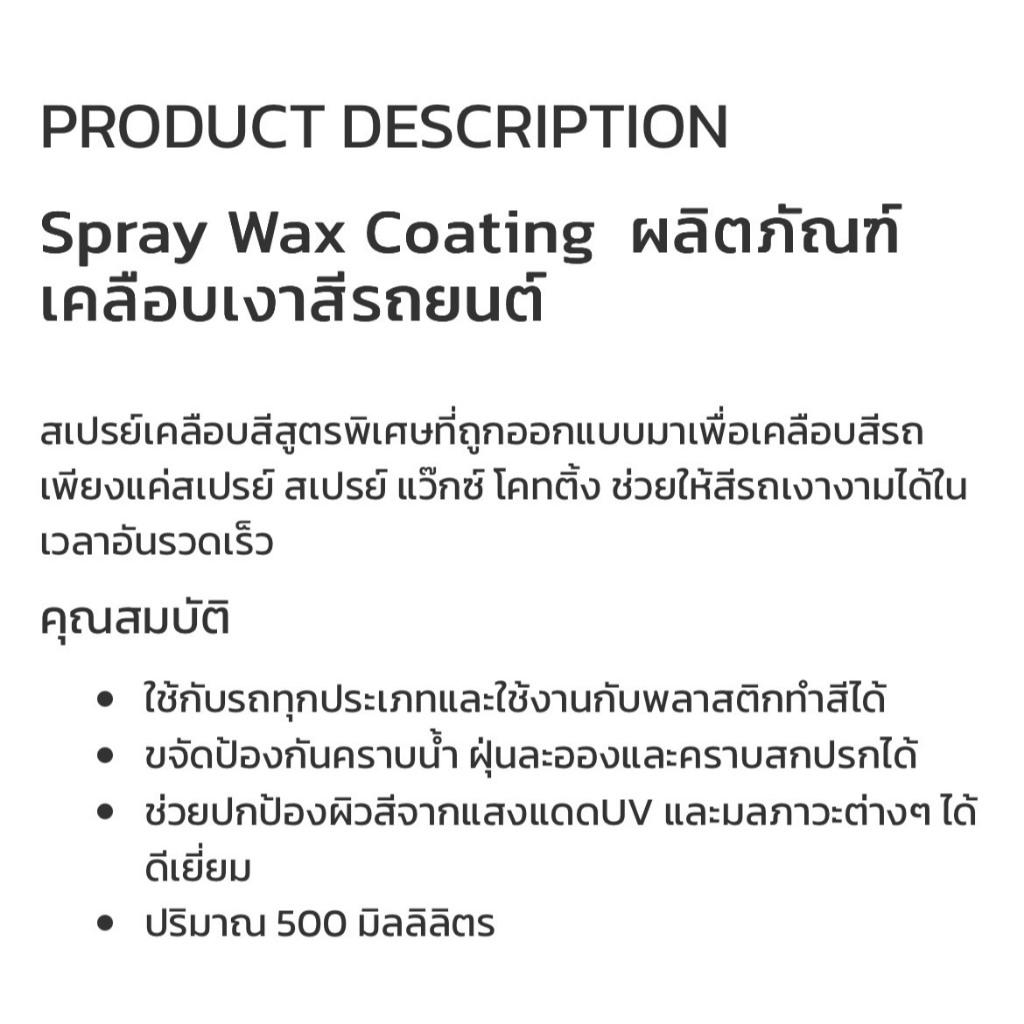 คาร์ชายน์ แว๊กซ์ โคทติ้ง สเปรย์เคลือบสีรถ สเปรย์เคลือบเงาสีรถ ขนาด 500ml. Karshine