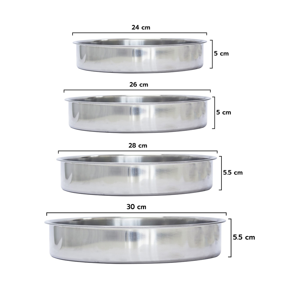 RRS ถาด กลมสแตนเลส ถาดเค้ก อเนกประสงค์ 24/26/28/30 ซม. ราคาต่อ 1 ใบ - เครื่องครัว