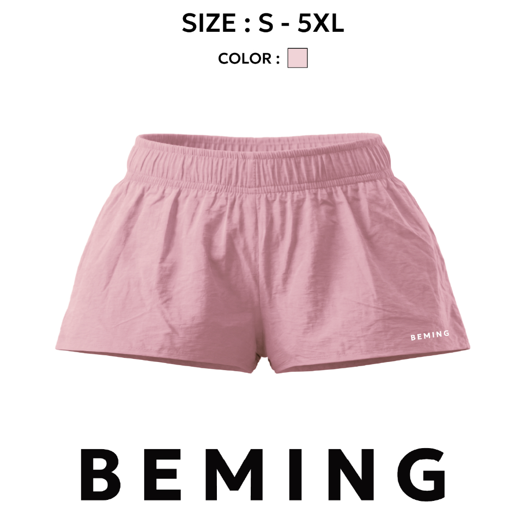 Bemingshorts050(XS-5XL)-Riko Shorts - กางเกงขาสั้นผ้าร่มเอวยางยืดดีไซน์เรียบ