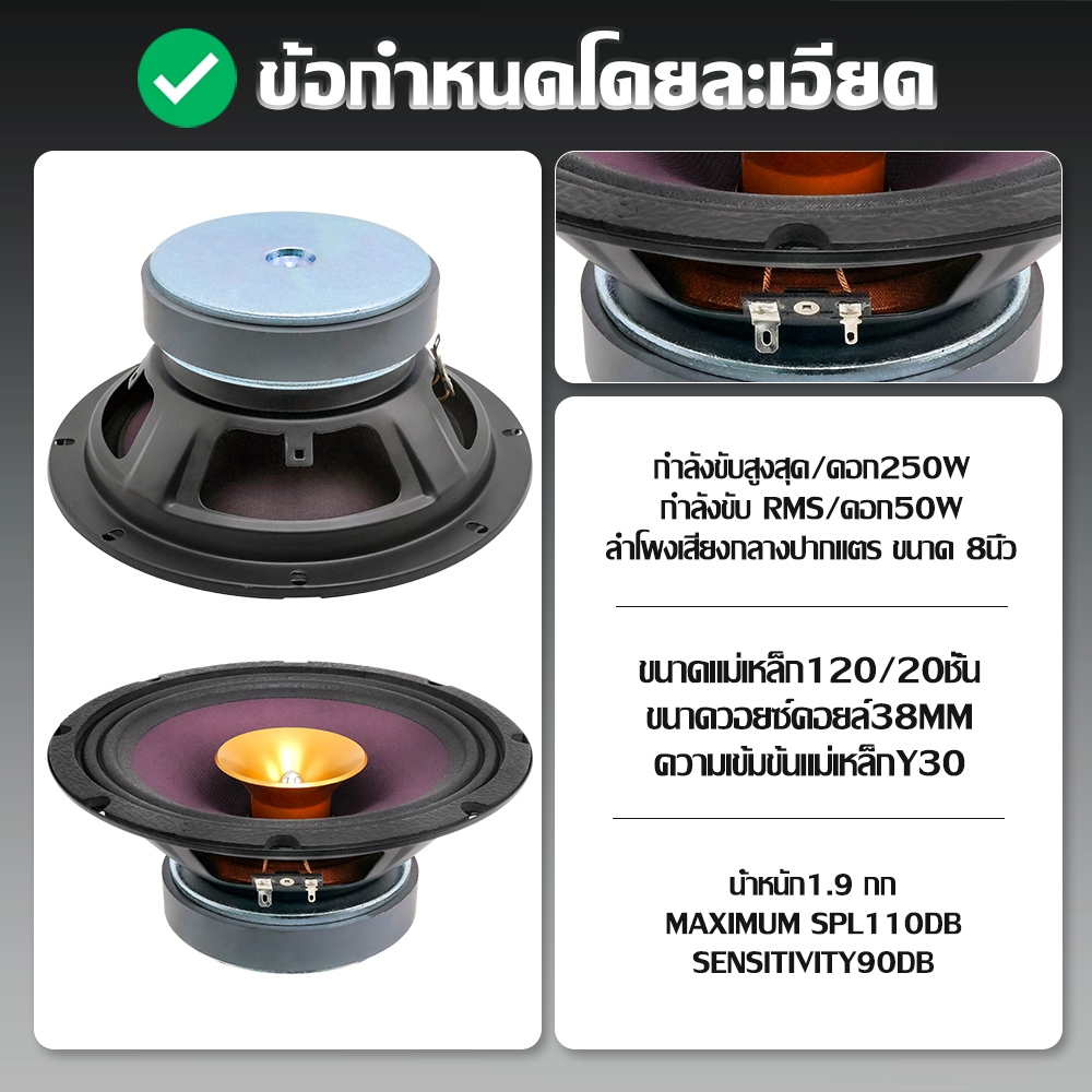 HILMAN ลำโพงเสียงกลางปากแตร ขนาด 8นิ้ว แม่เหล็ก 120x20 กรวยเคฟล่า ให้เสียงที่โดดเด่น รองรับกำลังขับสูงสุด 250 วัตต์
