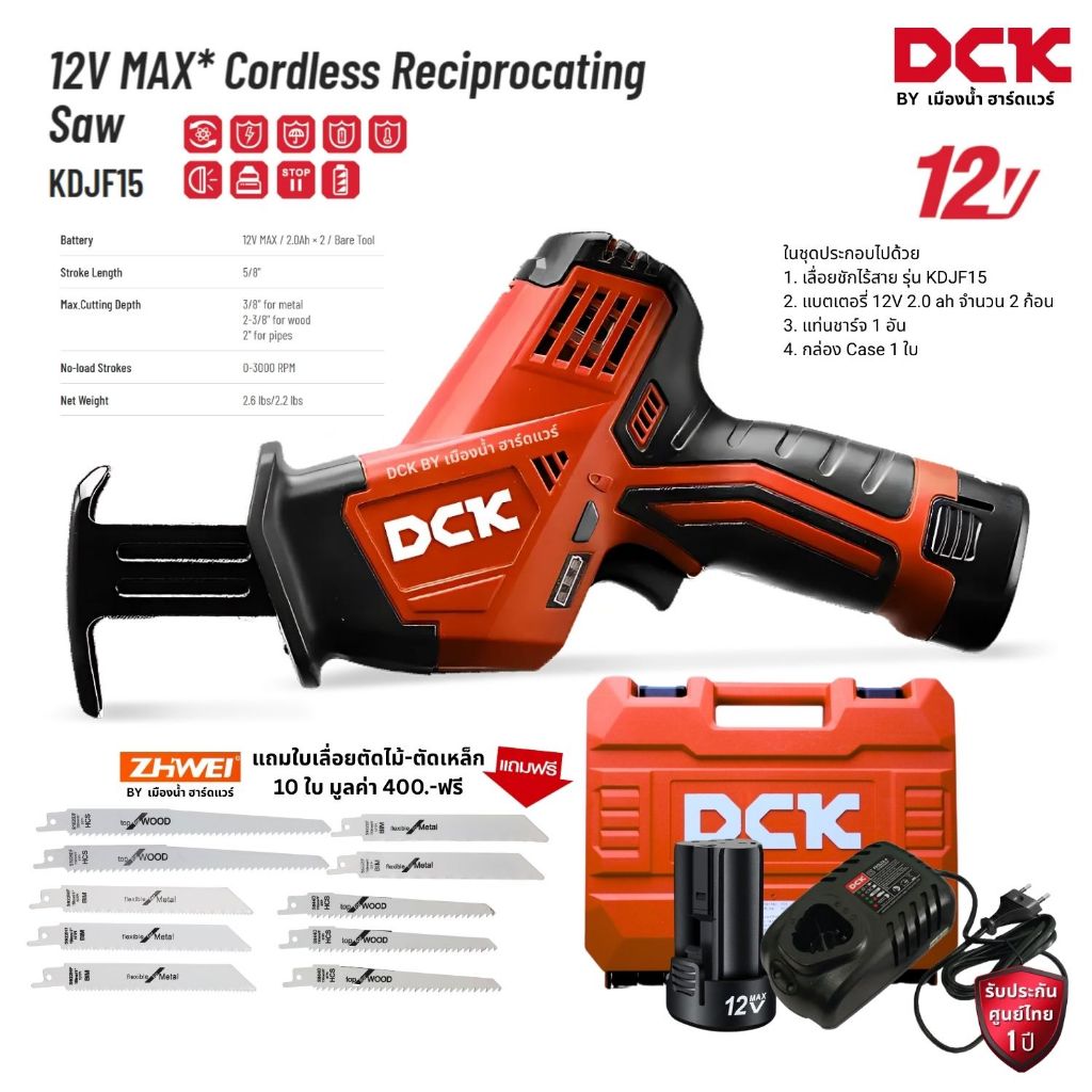 (ชุดพร้อมใช้+แถมใบ) DCK รุ่น KDJF15 EK เลื่อยชักไร้สาย 12V / 12V MAX* Cordless Reciprocating Saw รับประกันศูนย์ไทย 1 ปี