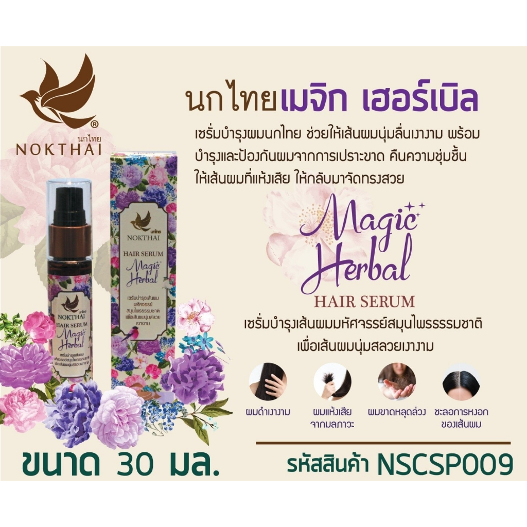 นกไทย แฮร์ เซรั่ม - เซรั่มบำรุงเส้นผม - 30มล. (แถมฟรี ยาสีฟัน 8กรัม 2 หลอด)
