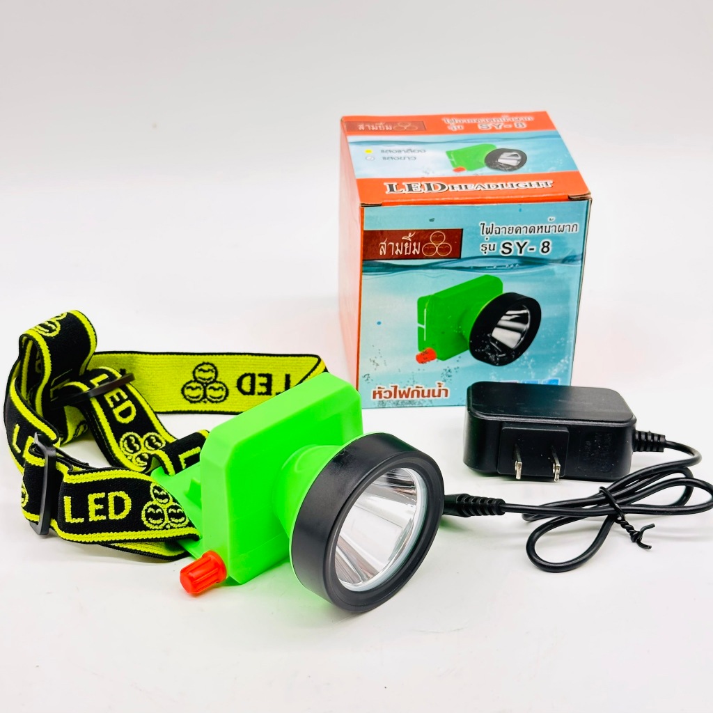 ไฟคาดหัว ไฟฉาย สามยิ้ม (SY-8)(แสงขาว) ของแท้ 100% หลอดไฟ LED สว่างมาก กรีดยาง อึด ถึก ทน ดำน้ำ เดินป่า ไฟจับกบ ไฟจับปลา