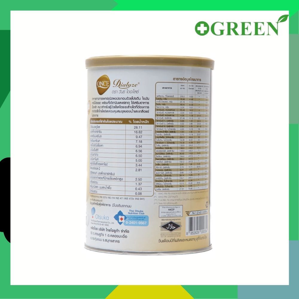 ONCE Dialyze Vanilla Flavor 400g วันซ์ ไดอะไลซ์ กลิ่นวานิลลา 400g อาหารชนิดผงสำหรับผู้ป่วยระยะล้างไต