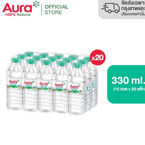 [20 แพ็ค] - AURA ออรา น้ำแร่ธรรมชาติ 100% 330 ml. x15 ขวด