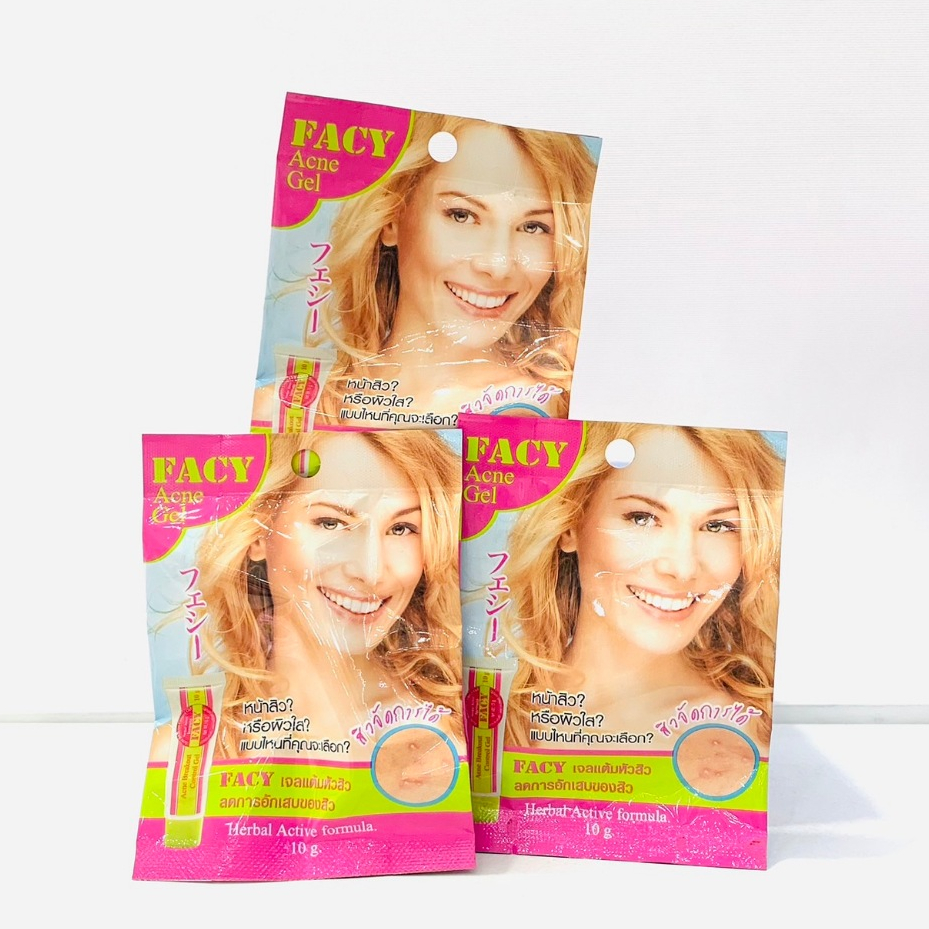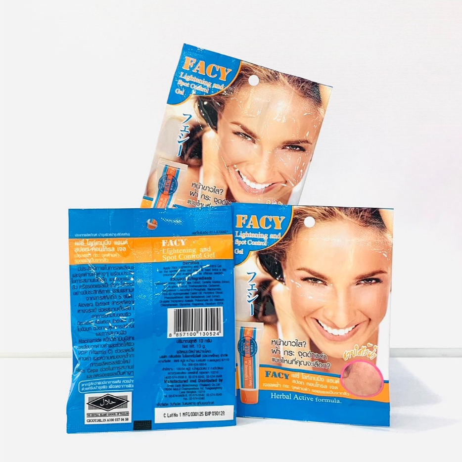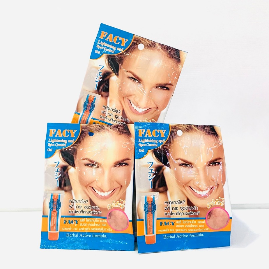 Facy เฟซี่ (เจลลดฝ้า กระ จุดด่างดำ , เจลแต้มหัวสิว ลดการอักเสบของสิว , ครีมลดเลือนริ้วรอยเฉพาะจุด ช่วยให้รูขุมขนเล็กลง)