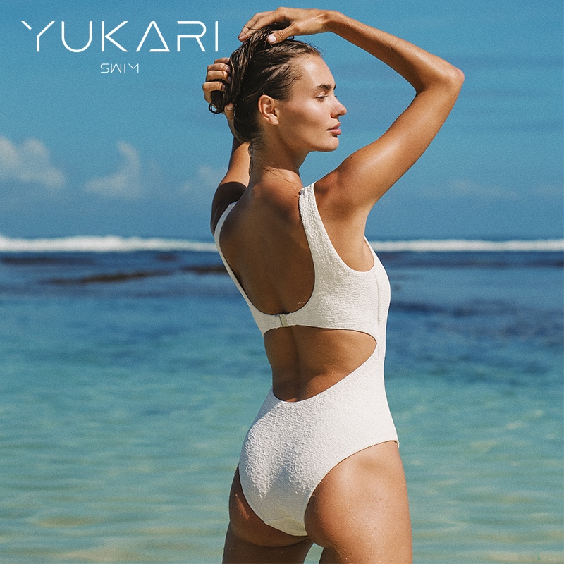 ชุดว่ายน้ําเอวสูง Yukari Swim ลายดอกไม้ พุช업และเปิดหลังแบบหยอดตา