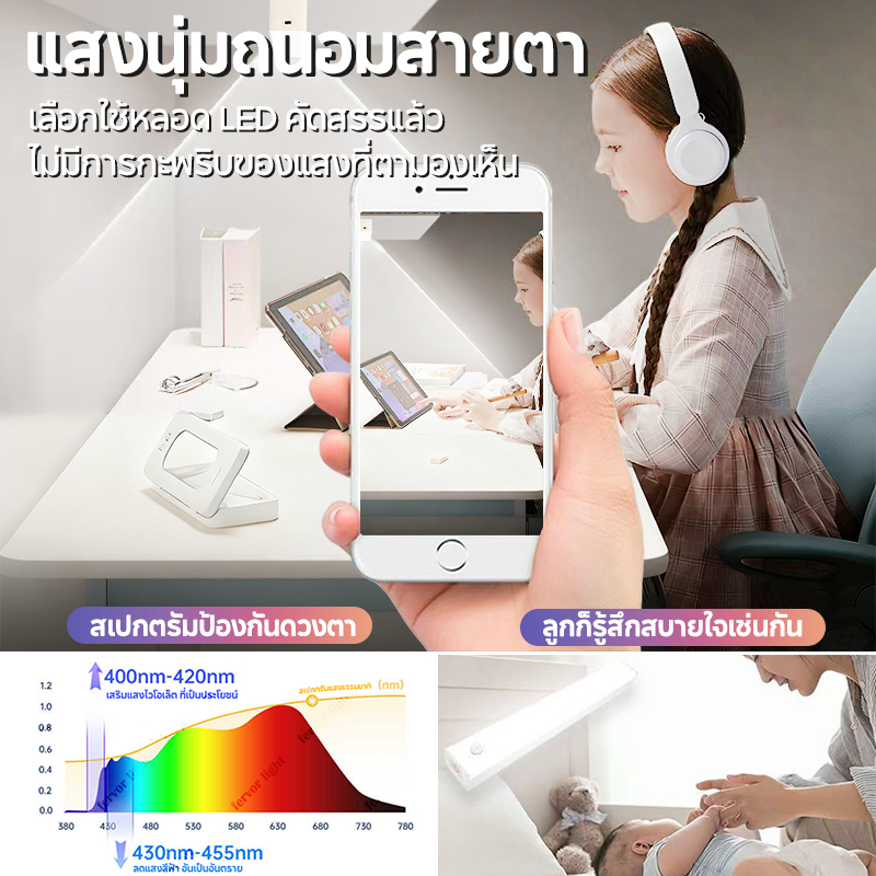ไฟเซ็นเซอร์ LED ไฟ แถบยาว พกพา ติดตั้งง่าย ไฟส่องสว่างอัจฉริยะ ไม่ต้องเจาะผนัง