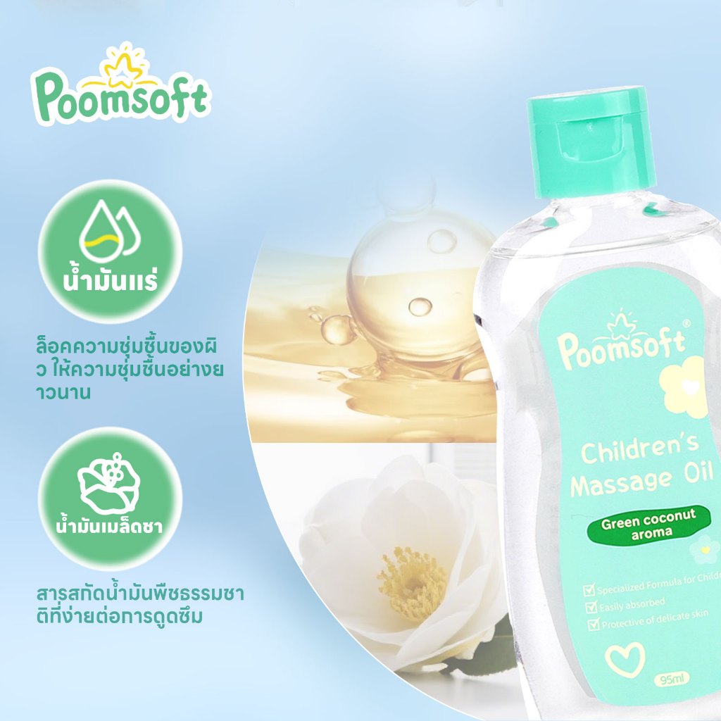 Poomsoft เบบี้ออยล์ น้ำมันนวดสำหรับทารก ออยบำรุงผิว ทาผิวเด็ก กลิ่นมะพร้าว น้ำมันทารก 95ML BABY OIL