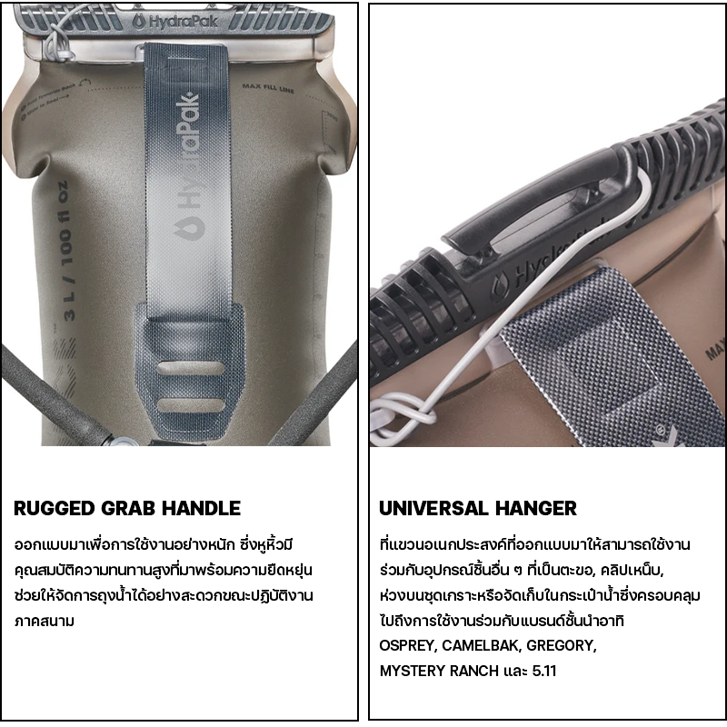 Hydrapak - Force 2L & 3L - Mammoth grey ถุงน้ำ กระเป๋าน้ำ สำหรับกิจกรรม ปีนเขา