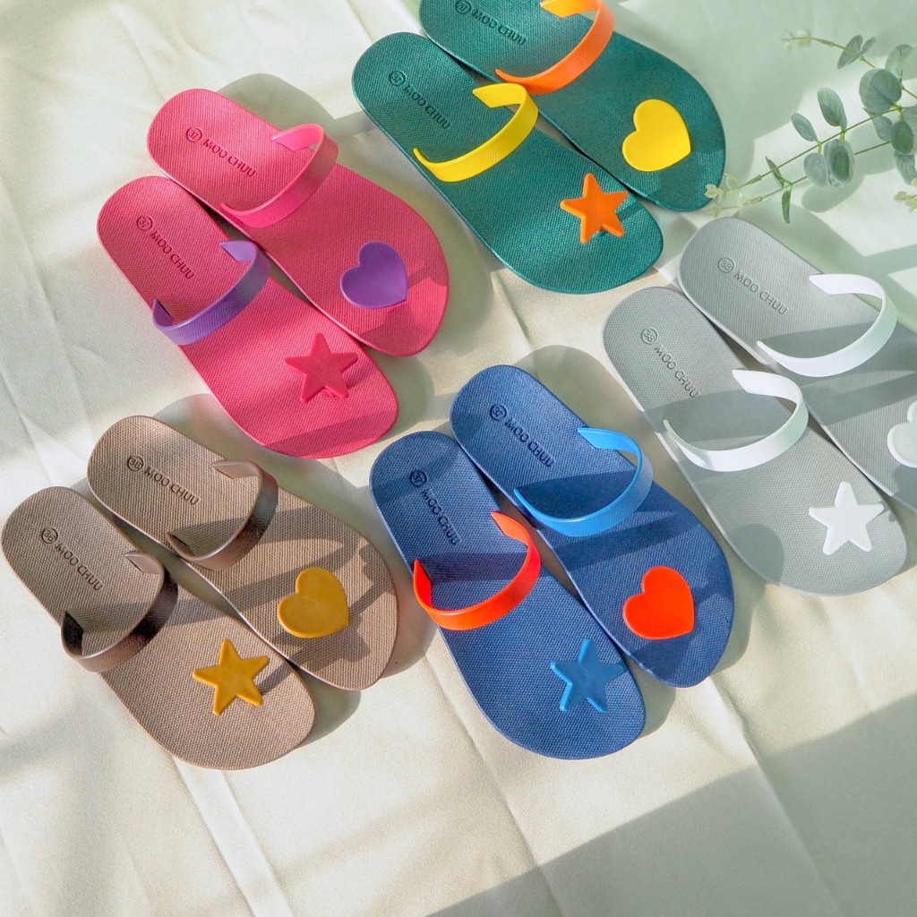 รองเท้าเล่นสงกรานต์💦 MOOCHUU พื้นนิ่มใส่สบาย ทำจากยางพารา ทนทาน กันน้ำ ไม่มีกลิ่นอับ ผู้หญิง (MC13)STAR/HEART