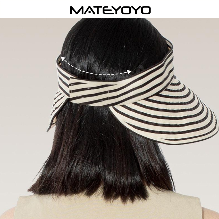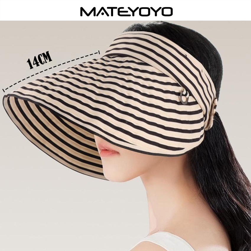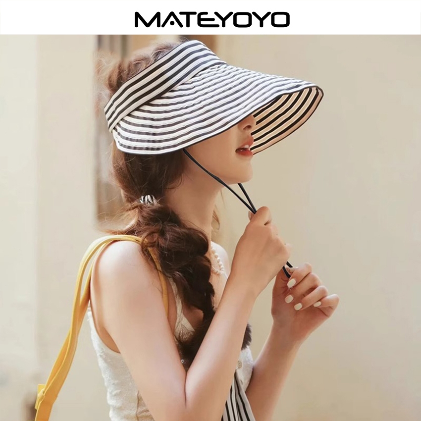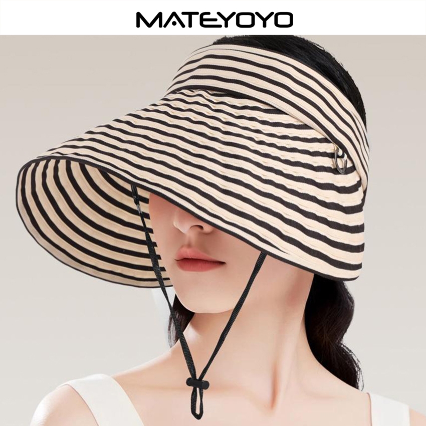 MATEYOYO แฟชั่นหมวกกันแดดพับได้แบบพกพาที่ว่างเปล่าด้านบนปีกขนาดใหญ่ป้องกันแสงแดดหมวกป้องกันรังสียูวีพร้อมเชือกกันลม