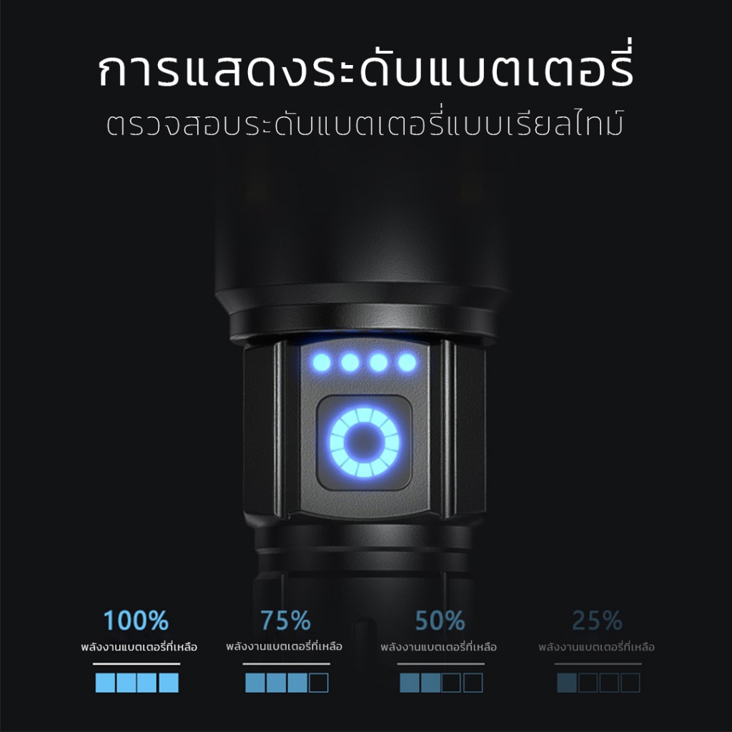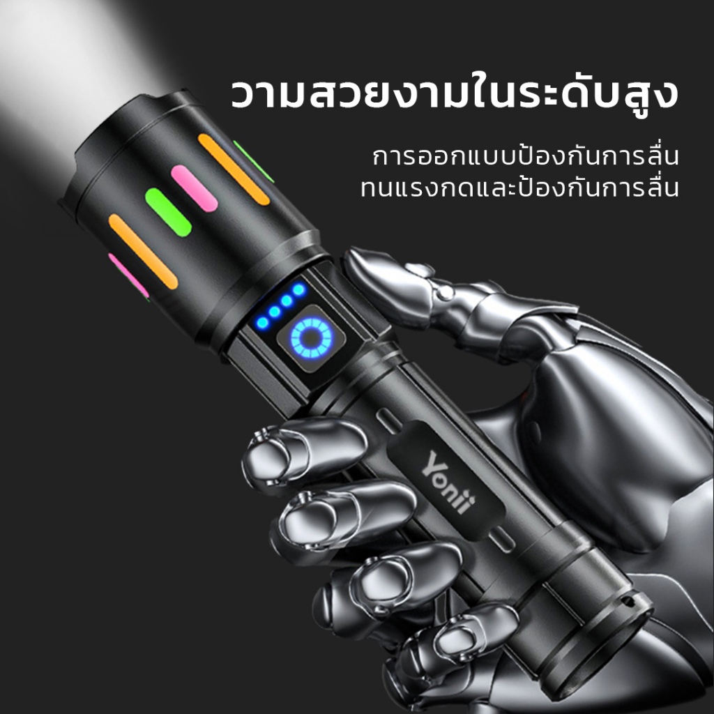 Yonii SD-S615 ไฟฉาย LED อลูมิเนียมอัลลอยด์ ชาร์จไฟได้ พกพาสะดวก ใช้ในยามค่ำคืนและกลางแจ้ง ความสว่าง 1000 ลู멘 (ใช้แบตเตอรี่ 18650)