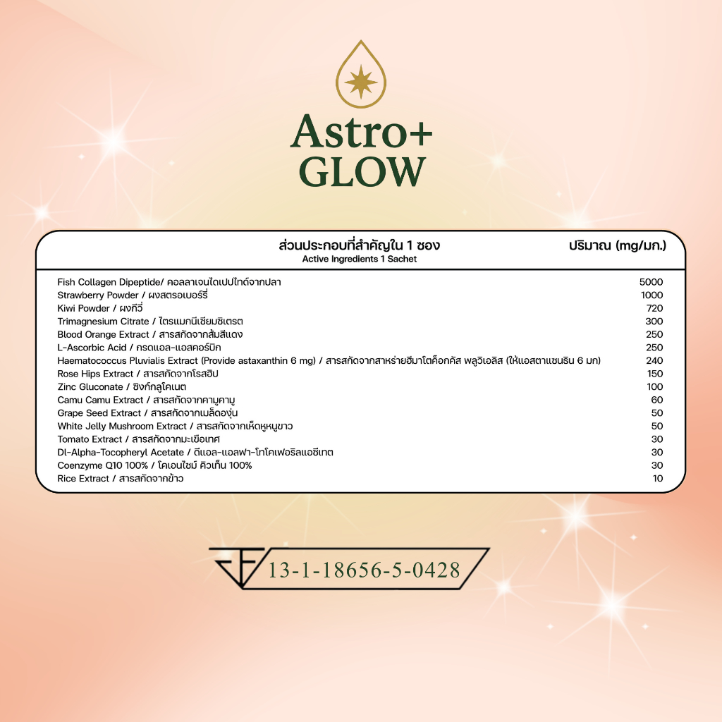 AstroGlow: อาหารผิวเต็มโดส ต้านแดด กันแก่ สารสกัดครบถ้วนในซองเดียว