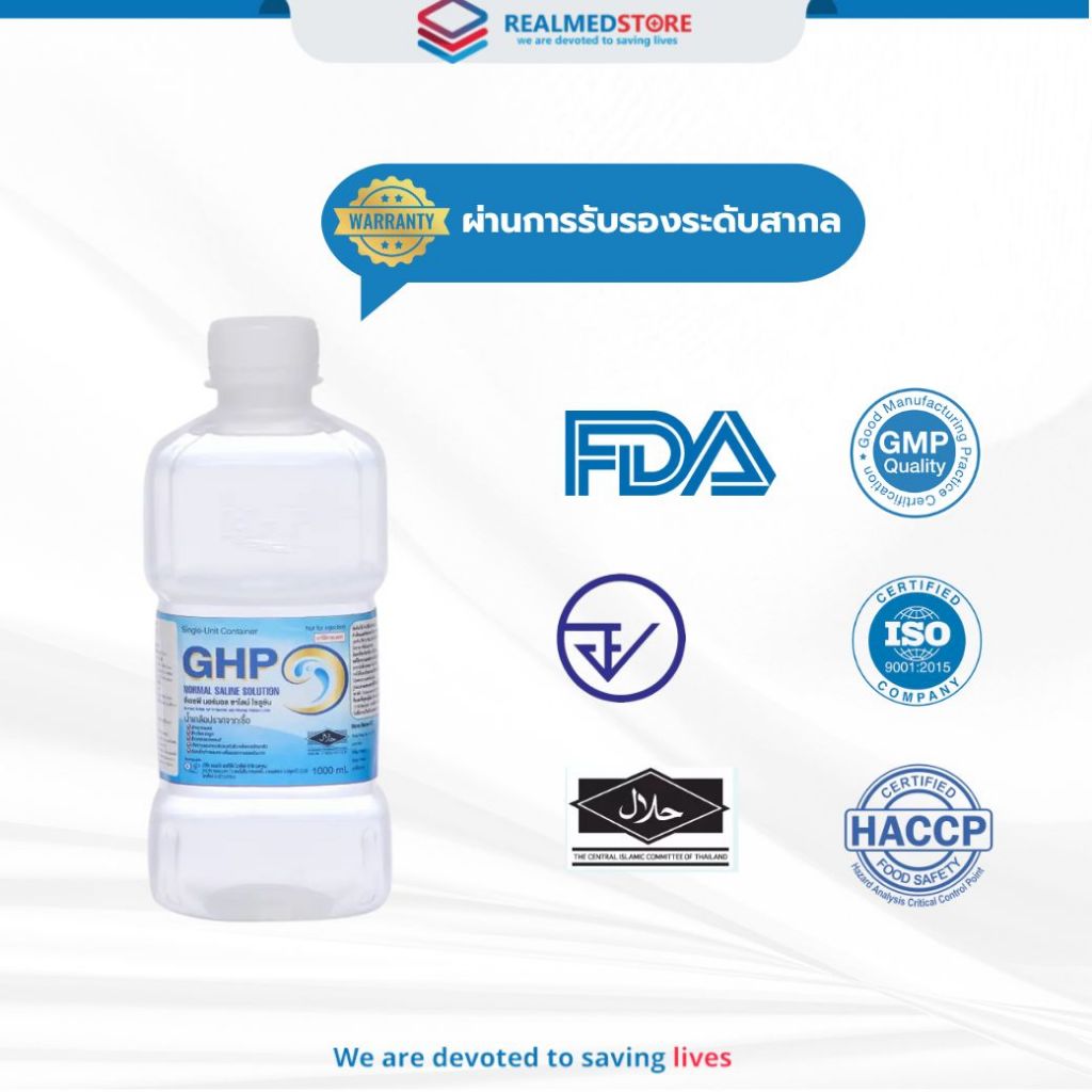 น้ำเกลือ GHP Normal Saline ขวดดัมเบล ล้างแผล ล้างจมูก ปลอดเชื้อ ขนาด 1000 ml. ยกลัง 10 ขวด